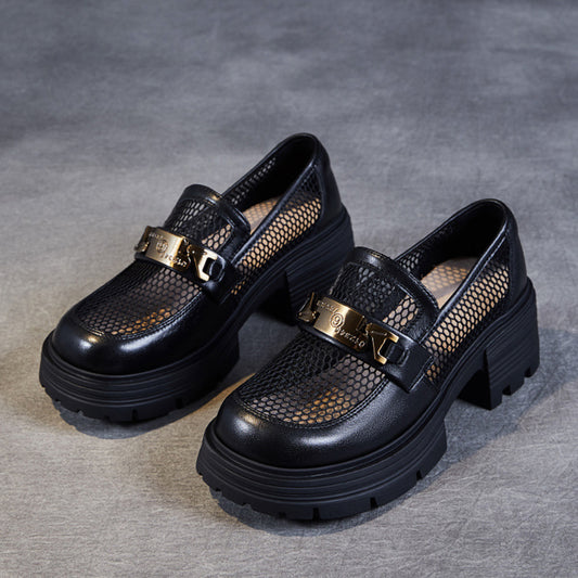 Chunky Mesh Loafers with Gold Chain Accent