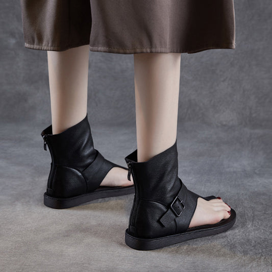 Clip-Toe Flat Sandals Boots With Rear Zippers