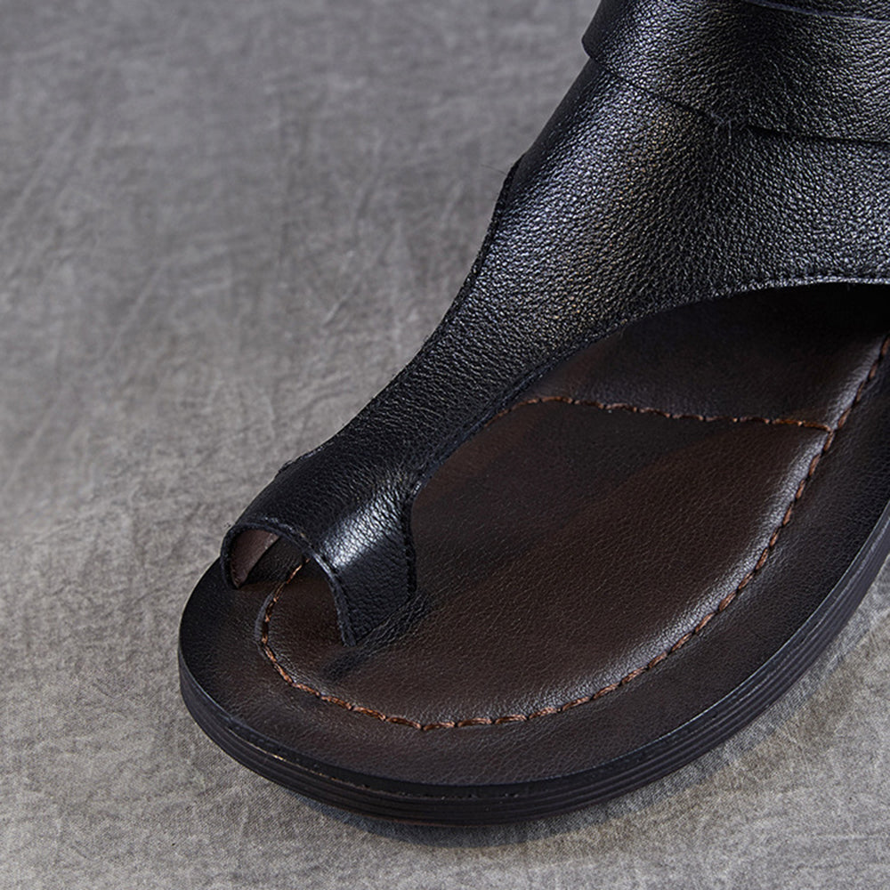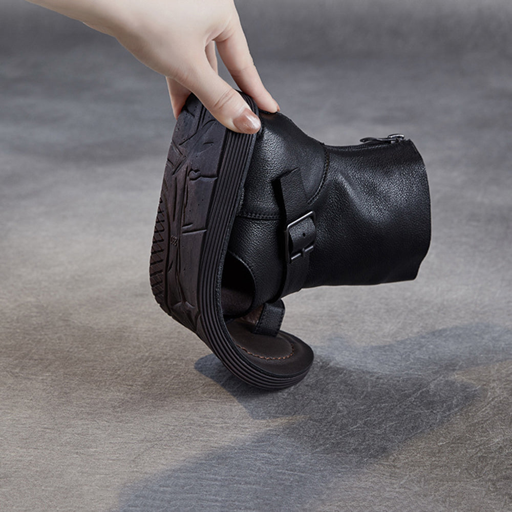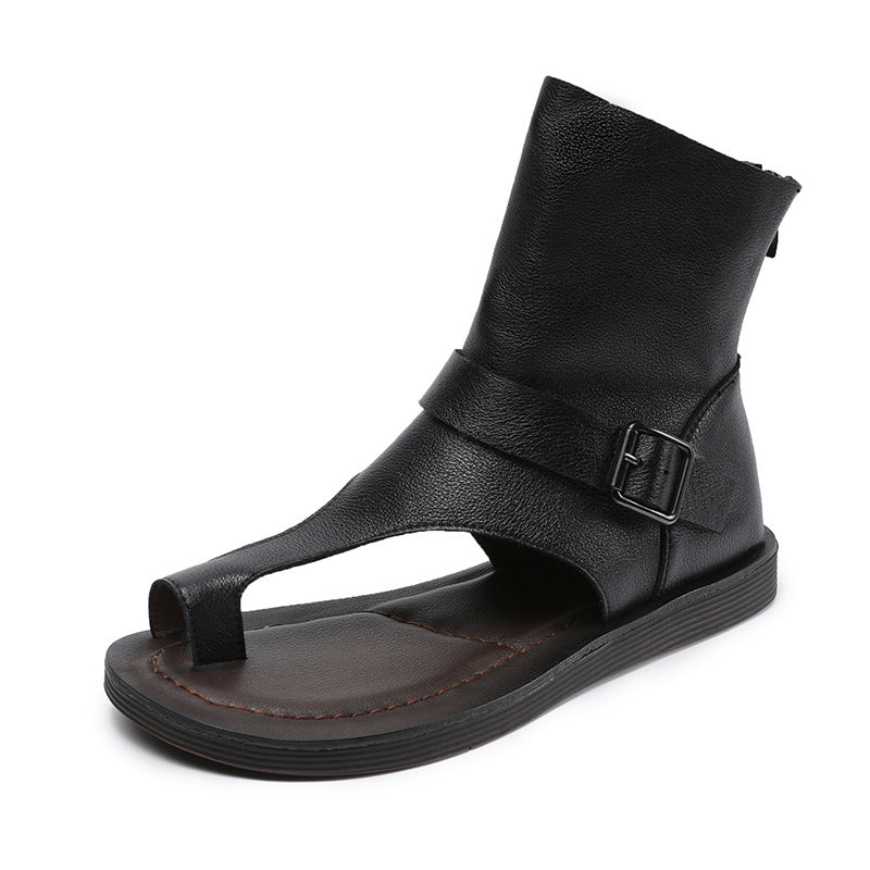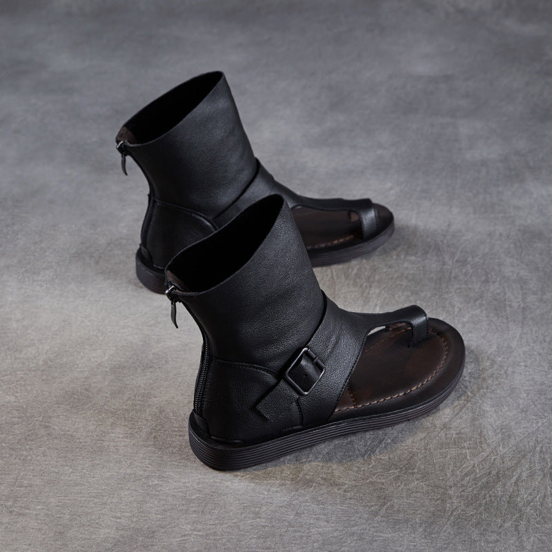 Clip-Toe Flat Sandals Boots With Rear Zippers