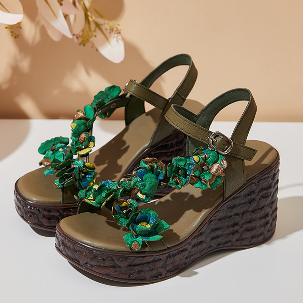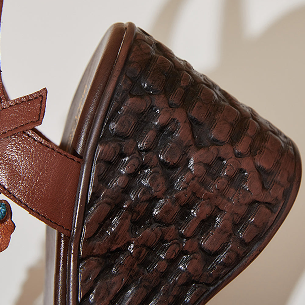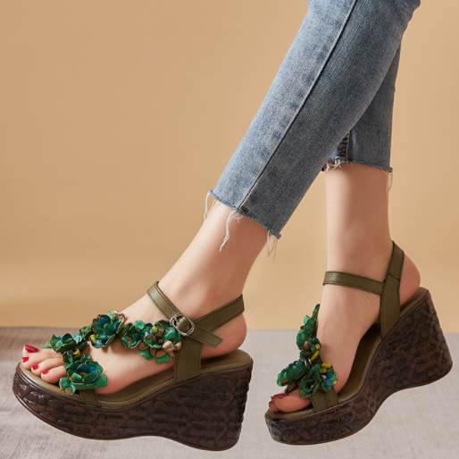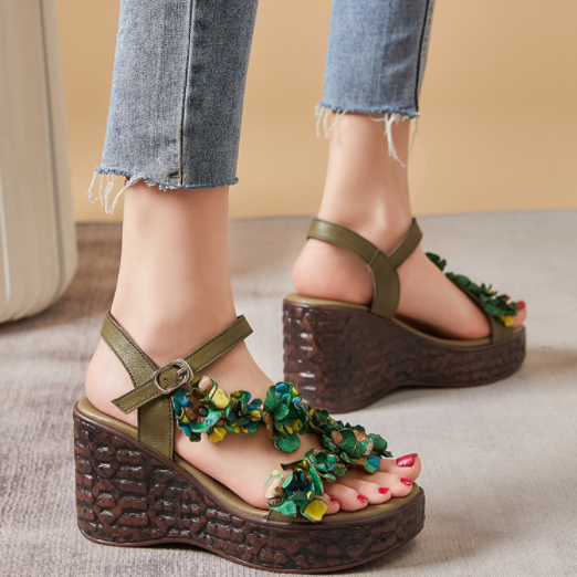 These Leather High Heels Flower Platform Wedge Shoes are the perfect choice for any fashionista. Crafted with high-quality leather, they are both soft and comfortable for all-day wear. The flower accents add a fashionable touch, while the wedge high heel design provides a little extra lift and makes you look stylish. Whether you're going for a casual look or a dressy ensemble, these shoes will be the perfect alternative.Details