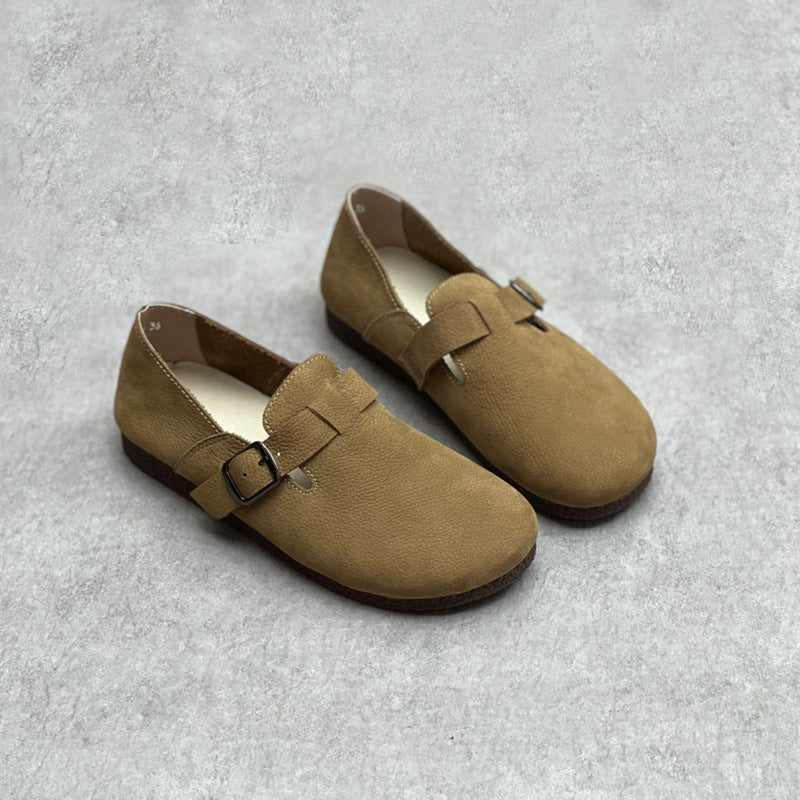 Slip-On Soft Leather Flats With Buckle Accents