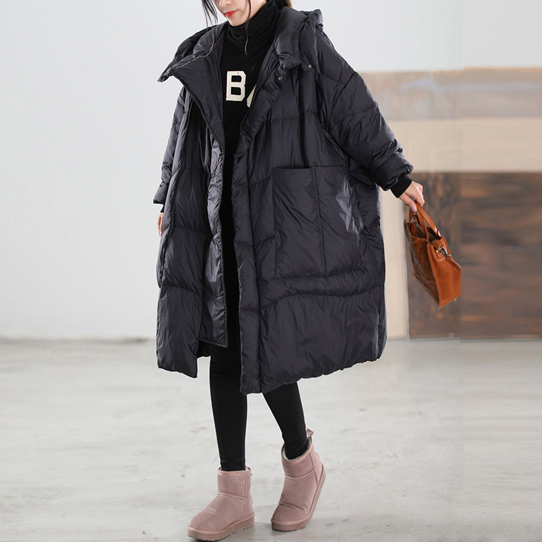 Women Loose Fit Double Zippers Hooded Down Jacket