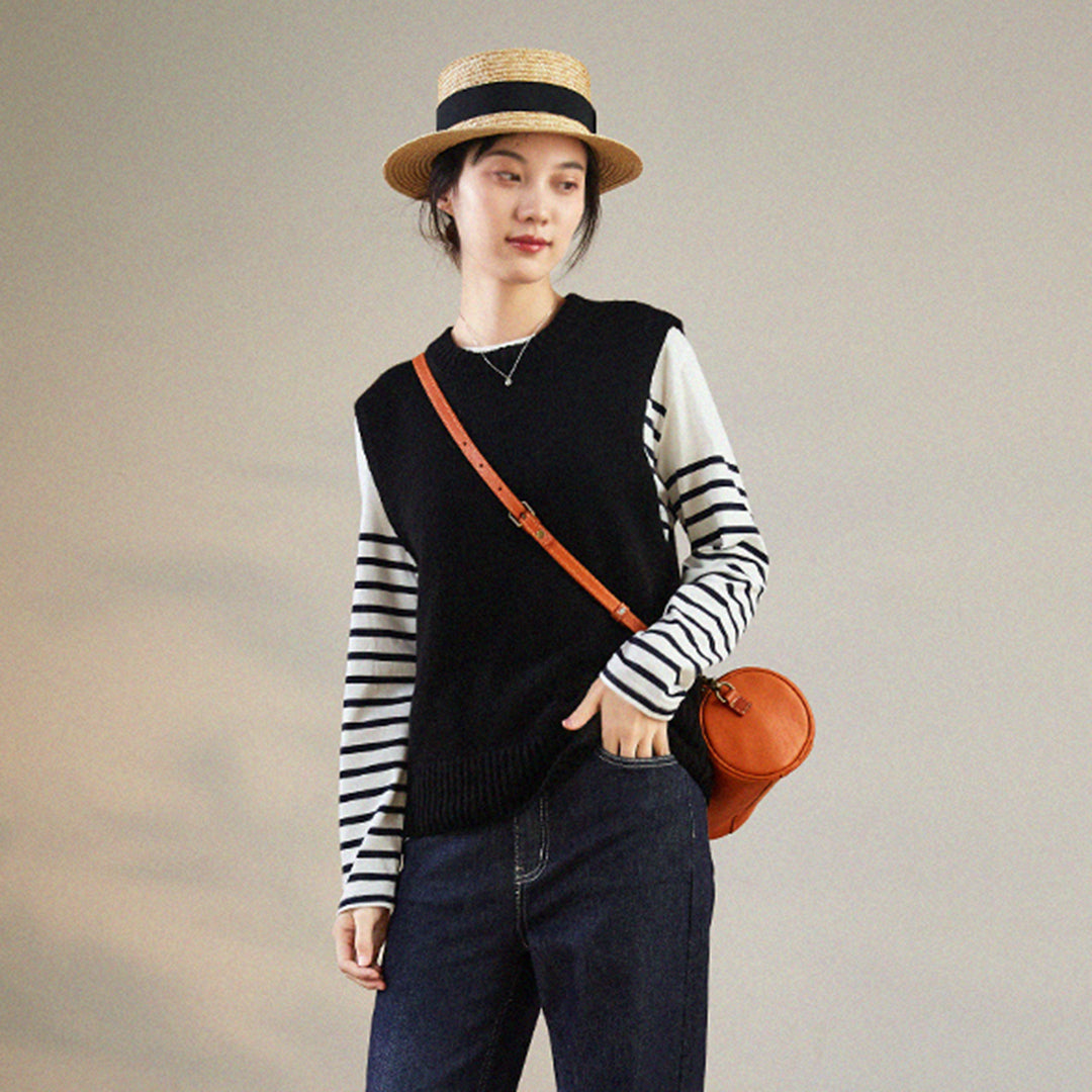 Women Striped Long-sleeve T-shirt new Loose Fit Casual Top